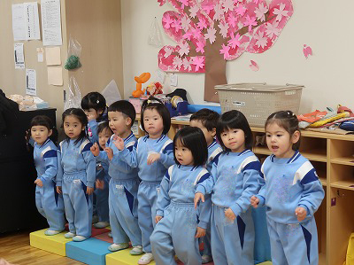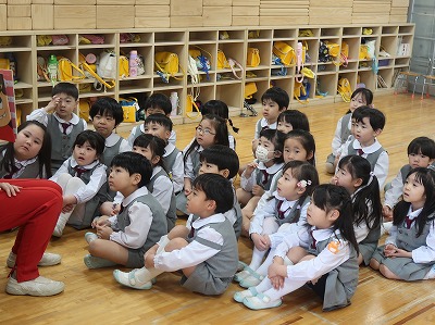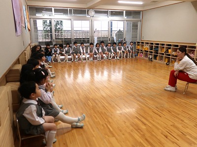 今度はひとつ大きい組。園長先生のお話を聞きました。