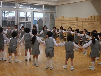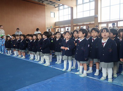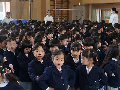 今日は修了式。全園児が集まってきましたよ。