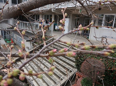 桜のつぼみもピンク色になり、開花が近づいてきました。