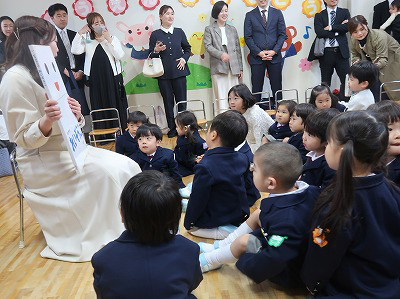 今度はひとつ大きい組。園長先生のお話を聞きました。