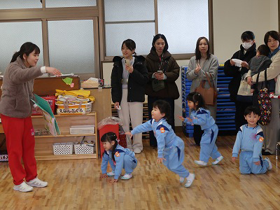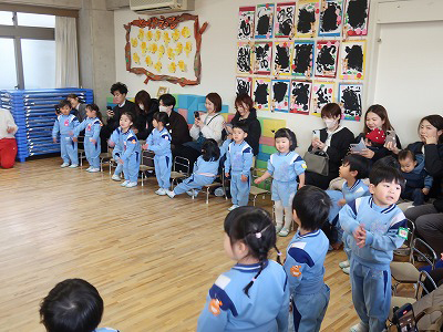 満3歳クラスの参観日に、たくさんの保護者の方がお見えです。