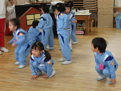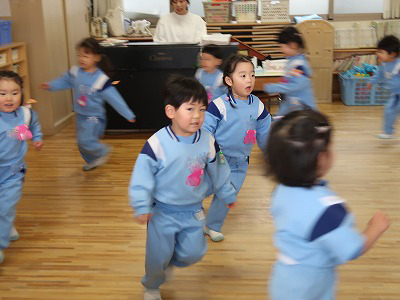 ピアノに合わせてランニング。みんな上手に走れるね。