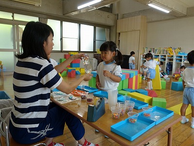 夏休み最後の一週間は夏期保育です。多くの園児が幼稚園に登園してきて、久しぶりに活気がよみがえりました。