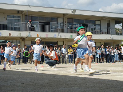 最初の競技は年少組のかけっこ。走る姿がとても愛らしい。