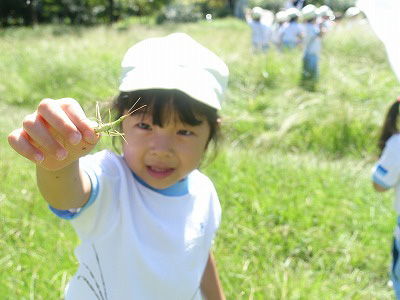バッタさんがいたよ! 目ざとく見つける子どもたち。
