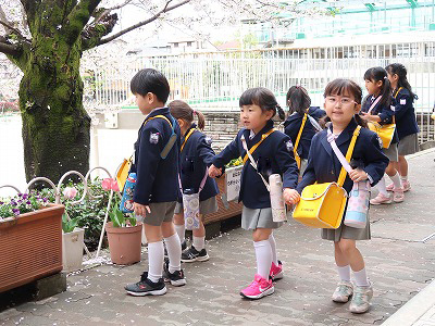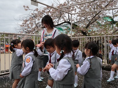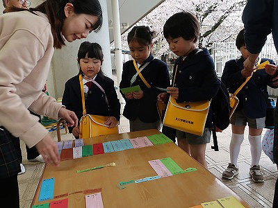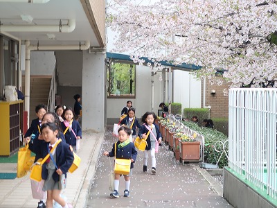 満開の桜の花が子どもたちを迎えてくれました。