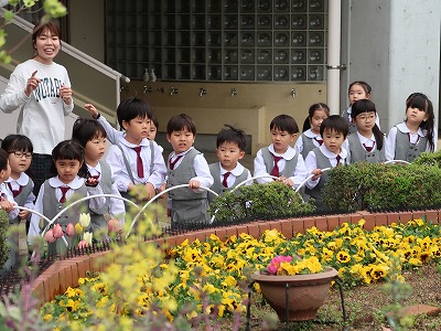 花壇の花も色とりどりにきれいに咲いているね。