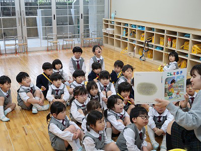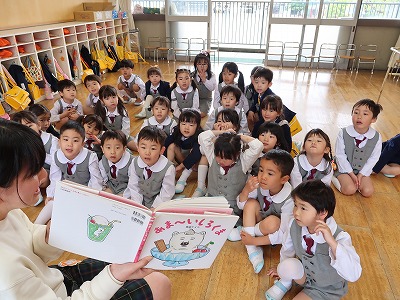 新しい先生に初めて絵本を読んでもらいました。