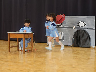 年中組と年長組は、各組が童話をもとにして遊んでいます。