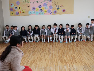 園長先生の話を聞いて、みんなで園歌を歌いました。
