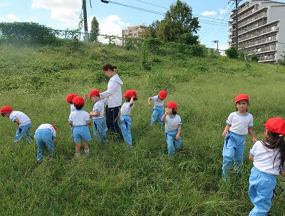 猛暑も収まり、年中組と年少組は公園へ遊びに行きました。