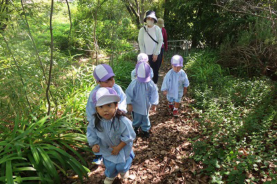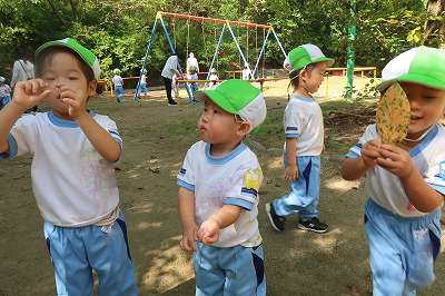 良いお天気。満3歳さんは近くの公園にお散歩です。