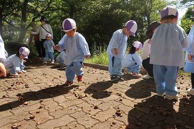 大きなドングリも見つけました。みんなで拾っています。