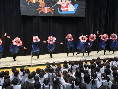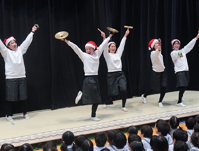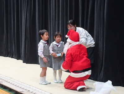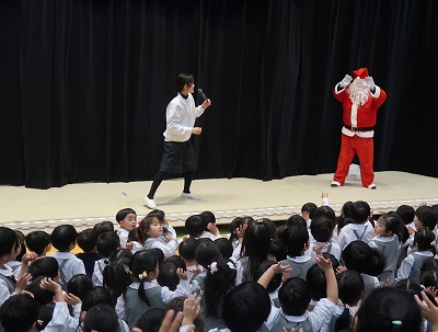 鈴の音にのって登場のサンタさんに大喜びの子どもたち。