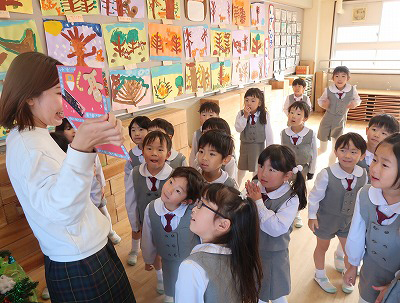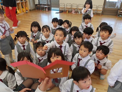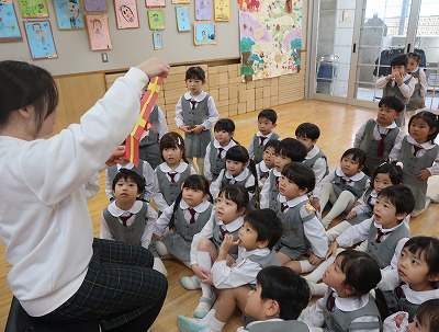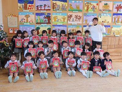 サンタさんからの手紙を目を輝かせて見る子どもたち。