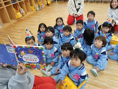 満3歳さんにもサンタさんが来たね。絵本を読んでもらいました。