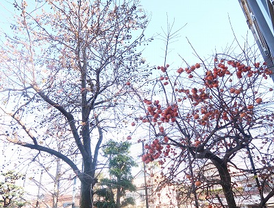 2学期最後の日です。葉っぱが散って柿の実が残っています。