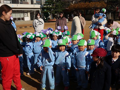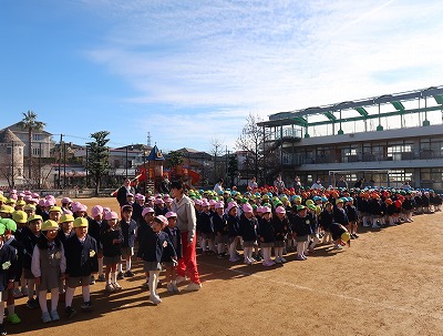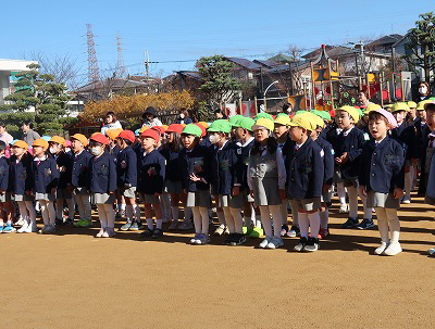 今日は2学期の終業式です。全園児が運動場に集まりました。
