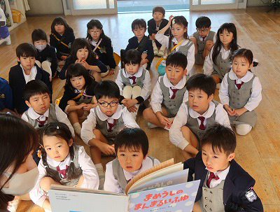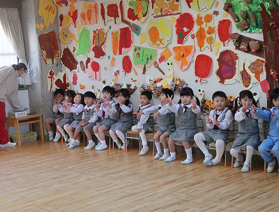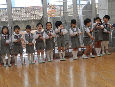 園長先生のお話を聞いてから、みんなで園歌を歌いました。