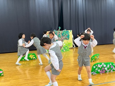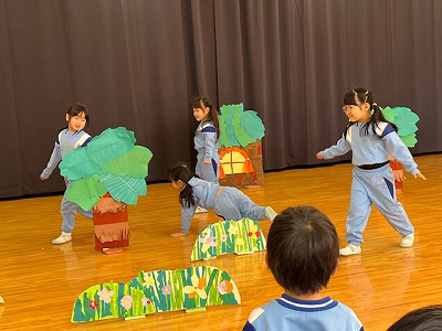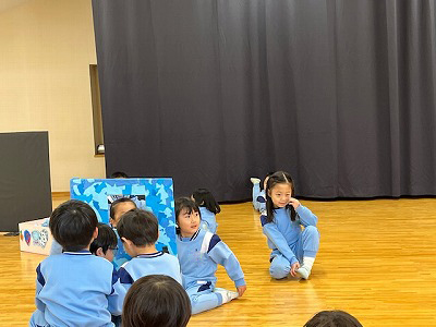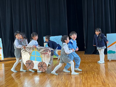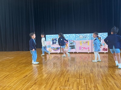 年中組は、ホールでのお芝居ごっこも始まりました。
