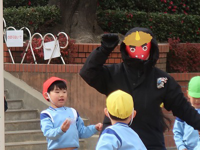 2月3日は節分。幼稚園にも鬼がやって来ました。