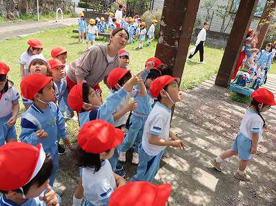 そんな日、年長組が近くの公園へ遊びに行きました。